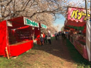 土手の下の方は屋台がならんでいるため、混むとベビーカーは難しそう。